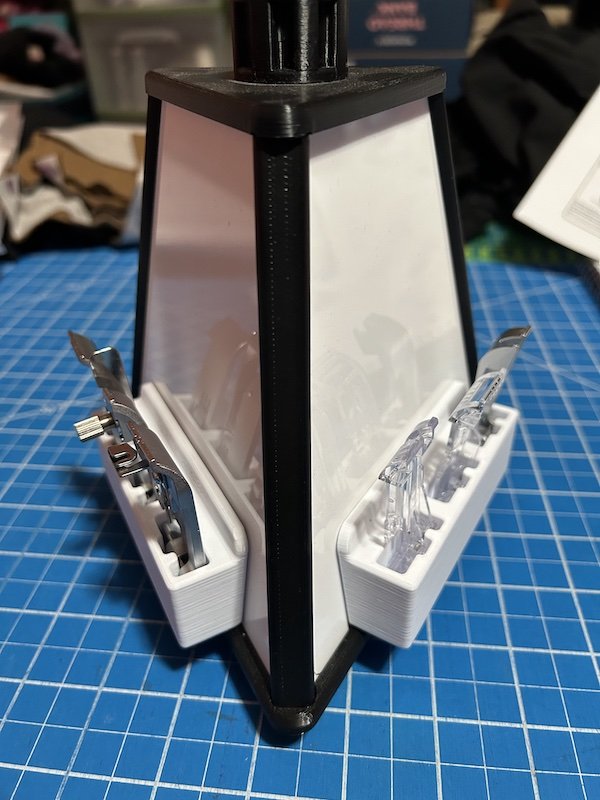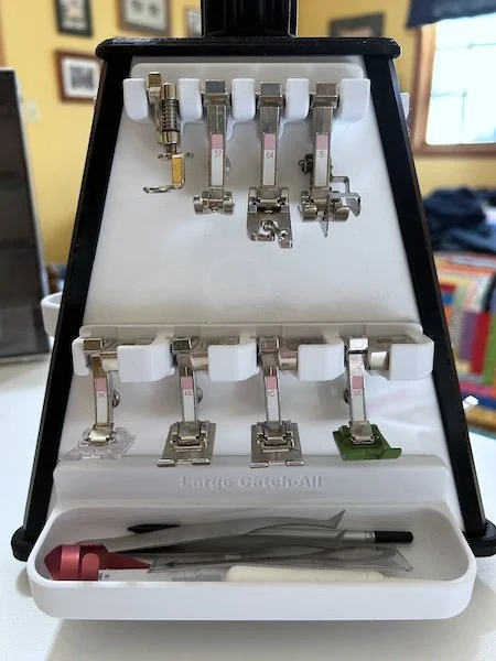 We had such fun in serger class yesterday. I had three students register ahead of time but one didn’t show. A fourth student registered just before class. The store had set up three sergers for me in the classroom. I wanted to do the class in a “round robin” format so that each machine could have a different stitch setting and decorative thread.