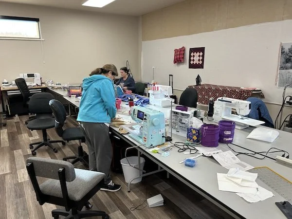 After that, we made scrunchies, shoelaces, and socks. I provided all the material. The students worked well together and we had a lot of fun. I want people to laugh and enjoy themselves in my classes. All three left feeling more comfortable and confident about using their sergers.