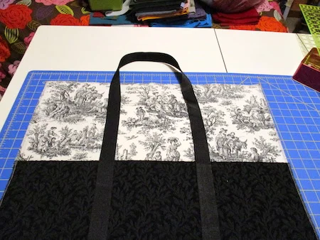 I had to go to town yesterday morning to do the errands I didn’t do on Friday. Joann Fabrics was my first stop. I found, on the remnant rack, an entire yard of the most perfect black damask fabric for the base of my bag. I almost couldn’t believe my luck. And the fact that there was a whole yard meant that I could also use it for the second bag project.