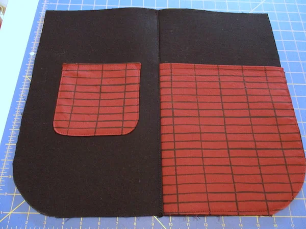 This is actually Fika Front 2.0. I was not happy with the first version, for a couple of reasons. The lining fabric I intend to use for the inside of the bag is a black-and-white print. When I used it for the linings of these pockets, the white peeked out along the sides and tops. I decided that would drive me batty enough that I wouldn’t want to finish the tote. I had enough fabric to cut a second set of pieces, and these pockets have a lining of plain black Kona. I am much happier with this version.