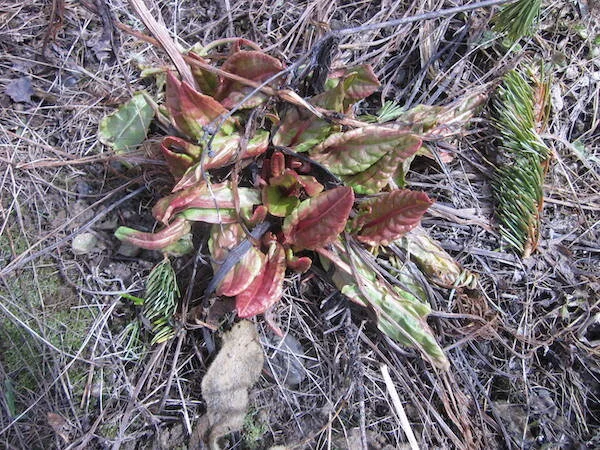 Signs of life! While I was checking the rhubarb, I also found a clump of garden sorrel: