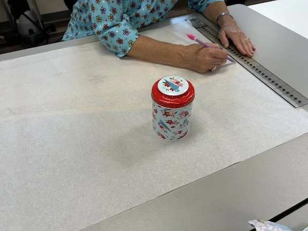 I taught the Free Range Slacks class yesterday to three students. I was very happy with how it went. Sometimes I suffer from impostor syndrome—who am I to be teaching garment classes when I’ve never been formally trained?—but everyone went home with a muslin that fit. I always encourage students to try on my class samples, and I try to have samples in several sizes. That helps me to identify fitting issues ahead of time and gives the students a ballpark idea of what size to make. One student needed no alterations, but the other two had to shorten the rise on their patterns. I showed them how to do that.