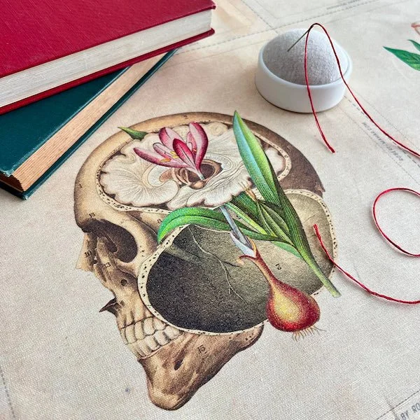 Sloth time is officially over. I am teaching two classes this week and have a podcast interview scheduled for tomorrow. I want to run up one more iteration of the Iguazu Top and start the Burnside Bibs. The baby quilt top needs to be quilted and bound and sent off. And I am trying to get myself back into the groove of embroidering in the evenings. I am working on one of Robert Mahar’s anatomical designs: