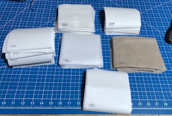 I had no interruptions yesterday and was able to be very productive. The Accuquilt cutter got quite a workout. These are some of the samples for my interfacing class: