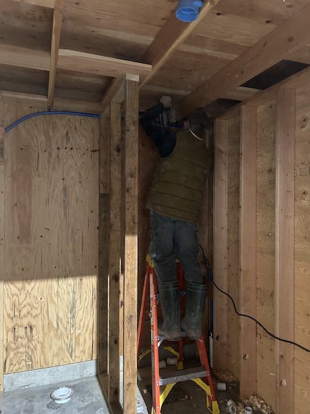 I snapped this pic as he was cutting a hole in the wall for the vent.