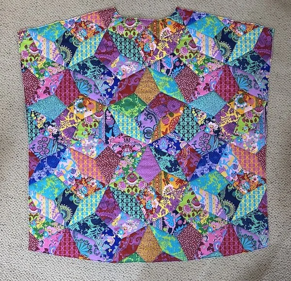 I am dithering about the size. This is a Large, which is supposed to finish at 49" at the bust. The pattern calls for 5/8" seams, but even so, this feels huge to me. I may cut it down to a Medium. I am now wondering about adapting the pattern for my BU jacket to have a shawl collar, because I love the way that jacket fits. Then again, I should probably stop messing around with quilted jackets. It did occur to me that it might be fun to lengthen this pattern into a long coat, though . . .